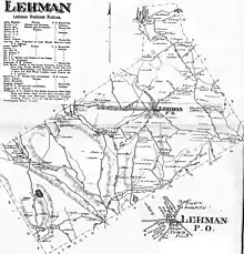 Nehemiah Ide and Jeremiah Brown are believed to be the first white settlers in modern-day Lehman Township; they moved to the region in 1801. Lehman Township was formed from a section of Dallas Township in 1829; it is named in honor of Dr. William Lehman.[3]
