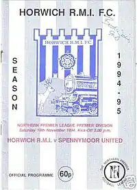 RMI was one of two football clubs founded at the workshops of the Lancashire and Yorkshire Railway; it was started at the locomotive works in Horwich. The other club was started at the Newton Heath carriage and wagon works and later became known, and famous, as Manchester United.[5] RMI played in various non-professional leagues over its first 90 years of existence, primarily in the Lancashire Combination, before moving into the newly formed North West Counties League in 1982,[6] and then onto the Northern Premier League the next year.[7]