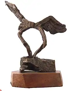 From 1948 onwards, Underwood cast his bronze sculptures in his own studio and throughout the 1950s, concentrated on his sculpture and on promoting his theories and philosophy of art.[7][24] In 1961 Underwood was elected an Honorary Member of the Royal Society of Sculptors and further recognition followed in 1969 when the first full-scale retrospective of his work was held at The Minories in Colchester.[3][7] The art historian John Rothenstein wrote in the introduction to that exhibition that Underwood was "..the most versatile artist at work in Britain today..".[25] However it was to be over forty years before the next major retrospective of his work was held, in 2015 at the Pallant House Gallery.[15][9] This lack of attention has been attributed to the range and versatility of Underwood's output which, across the various media he worked in, lacked a common recognisable style that was easy to promote and also to his, sometimes, complex and esoteric philosophies and theories on art.[26]