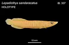 - ↑ Froese, Rainer; Pauly, Daniel (eds.) (2019). "Lepadichthys sandaracatus" in FishBase. April 2019 version.