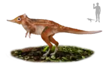 Leptictidium (a Latinized diminutive of the name of its relative Leptictis, which means "graceful weasel" in Ancient Greek) is an extinct genus of small mammals that were likely bipedal. Comprising eight species, they resembled today's bilbies, bandicoots, and elephant shrews. They are especially interesting for their combination of characteristics typical of primitive eutherians with highly specialized adaptations, such as powerful hind legs and a long tail which aided in locomotion. They were omnivorous, their diet a combination of insects, lizards and small mammals. Leptictidium and other leptictids are not placentals, but are non-placental eutherians, although closely related. They appeared in the Lower Eocene, a time of warm temperatures and high humidity, roughly fifty million years ago. Although they were widespread throughout Europe, they became extinct around thirty-five million years ago with no descendants,[1] probably because they were adapted to live in forest ecosystems and were unable to adapt to the open plains of the Oligocene.