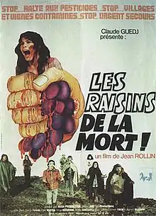 Les Raisins de La Mort (English: The Grapes of Death, also known as Pesticide) is a 1978 French horror film directed by Jean Rollin. It centres on a young woman who becomes trapped in a village where a dangerous pesticide has turned the residents into aggressive zombies.[1]