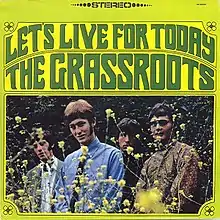 Let's Live for Today is the second studio album by the American rock band the Grass Roots, released in July 1967 by Dunhill Records. A new group was brought in for this album which included Creed Bratton, Rick Coonce, Warren Entner and Rob Grill. It features their first top-ten hit by the same name, "Let's Live for Today". The bulk of the compositions are by group creators Sloan and Barri, but the new group was allowed to compose four songs and was given some input in the studio instrumentation. The other A and B side singles released were "Depressed Feeling" (Non-LP B-side of "Let's Live for Today"), "Things I Should Have Said" b/w "Tip of My Tongue", and "Wake Up, Wake Up" b/w "No Exit". The album charted at No. 75.[4]