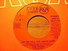 "Let Me Tell You About Love" is a song written by Carl Perkins, Paul Kennerley and Brent Maher, and recorded by American country music duo The Judds. It was released in June 1989 as the second single from the album River of Time. The song was The Judds' fourteenth and final number one on the country chart. The RCA/Curb single, 8947-7-R, b/w "Water of Love", went to number one for one week and spent a total of fifteen weeks on the country chart.[1] The record also reached number one on the Canadian RPM Country Tracks chart.