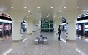 Lianhuaqiao station[1] (simplified Chinese: 莲花桥站; traditional Chinese: 蓮花橋站; pinyin: Liánhuāqiáo zhàn) is a station on Line 10 of the Beijing Subway.[2][3] This station opened on December 30, 2012.[4] It will be an interchange station between Line 10 and Line 11 (Phase 2).[5][6] The station is named after the nearby grade-separated junction called Lianhua Bridge.