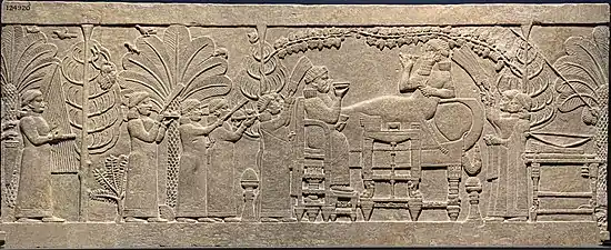 ![]() Relief of Libbāli-šarrat from Nineveh, depicted dining | |