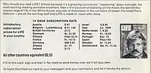 On March 25, 1966, Life featured the drug LSD as its cover story. The drug had attracted attention among the counterculture and was not yet criminalized.[40]