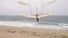 The original Large Biplane glider did not survive. However, there are several exemplars of the original monoplane that the biplane was based on. Reconstructions exist in several museums. An authentic replica of the Large Biplane made by the Otto Lilienthal Museum has been investigated by the German Aerospace Center (DLR) during flight tests in California and North Carolina. The reconstruction of a replica of this glider type used for flight testing was possible by means of the patent drawings of the monoplane glider and many detailed photographs, of both the monoplane and the biplane.[2] The results prove that the glider was stable in pitch and roll and can be flown safely at moderate altitudes in smooth air.[3][4]