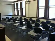 Since the renovation of Lincoln Hall, air conditioning and wireless connection are installed throughout the entire building. All 18 classrooms are on the first floor and each classroom has audio/visual capacity. Every classroom is equipped with projectors, display screens, chalkboards, and speakers. Office suites are on the upper floors and include conference rooms equipped for presentations and meetings with faculty.