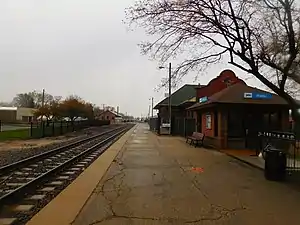 Lincoln station is an Amtrak train station in Lincoln, Illinois, United States, at Broadway and Chicago Streets. Service is provided by Lincoln Service and the Texas Eagle. The current station is the rail line's former freight depot, renovated in 2017.[2] Adjacent to the current station structure is a brick Spanish Mission-style depot building, constructed in 1911[2] by the former Chicago and Alton Railroad and later used by the Gulf, Mobile and Ohio Railroad. Although no longer used by Amtrak, the historic 1911 depot has been renovated for commercial use. During the 1980s and 1990s it served dually as a railroad station and restaurant.[3]