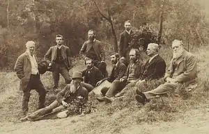 Sitting, from right to left: Sir William Macleay, Dr James Cox, John Brazier, J. H. Maiden, Ernst Betche, Henry Deane.