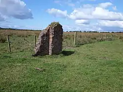 The row of three railway workers cottages survive as private residences and the loading dock is still a prominent structure in this otherwise somewhat featureless landscape near Lissens Moss. The railway fencing and gate survive as does the substantial road overbridge. The signalbox's old chimney partly remains as do the foundations and the cistern.