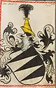 - ↑ Schild von Roth und Silber gespalten und darüber eine schwarze Zwergstrasse or Mauer mit vier Zinnen