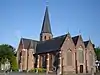 Wavre | Saint-Jean-Baptiste Church (FR)[12] | Gothic 16th century | nave and base of the tower of red stone, tower of red brick with narrow layers of white stone | ![]() |