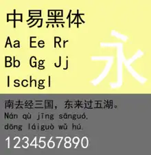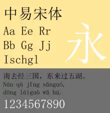 Sample of Ming typeface. Shown here are its forms in (from top to bottom): Simplified Chinese, Traditional Chinese, and Japanese.