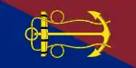 c. 1964–present | Flag of the Canadian Navy Board | A field party per bend, blue and sanguine, with a fouled anchor in gold charged in the centre |