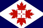 ![]() | 1964 | Proposal made during the Great Flag Debate featuring four maple leaves | Four large maple leaves occupy the center of the flag. Behind them is a white diamond on a blue background. The leaves are arranged similarly to the modern heraldic mark of the Prime Minister, and their stems form the Cross of Saint George in the middle. |
