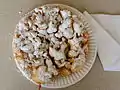 Fried dough topped with powdered sugar, typically served during May Day |