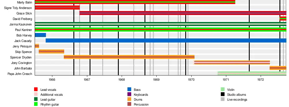 A list of the different lineups of Jefferson Airplane with membership changes in each subsequent entry in bold.