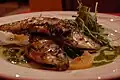 A marinade to flavor fish or seafood, but it can be used on other meats or vegetables. Chermoula is often made of a mixture of herbs, oil, lemon juice, pickled lemons, garlic, cumin, and salt. It may also include onion, fresh coriander, ground chili peppers, black pepper, or saffron. | |