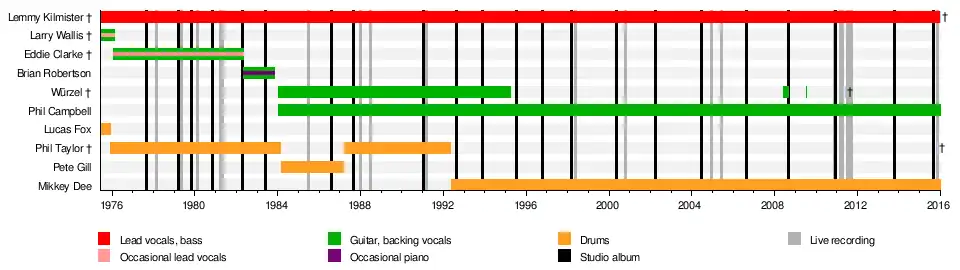 Ian "Lemmy" Kilmister | 1975–2015 (until his death)[2] |