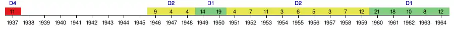2019–20 | 2 | 20 | 10 | 7 | 3 | 33 | 14 | 37 | QF | EL | 3QR | ![]() ![]() | ![]() ![]() | |