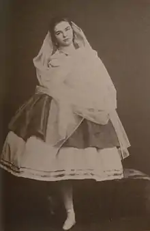 ![]() Ekaterina Vazem costumed as Nikiya for Act II of "La Bayadère". St. Peterbsurg, 1877. | |