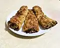 Farsu magru | ![]() | beef or veal slices flattened and superimposed to form a large rectangle, with a layer of thin bacon slices on top. For the filling, crushed bread slices, cheese, ham, chopped onions, garlic and fresh herbs are mixed together. |