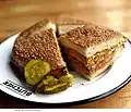 Muffuletta | ![]() | a sesame-seed bread, or the layered New Orleans sandwich made with it, stuffed with sausage meats, cheese, olive salad, etc. |