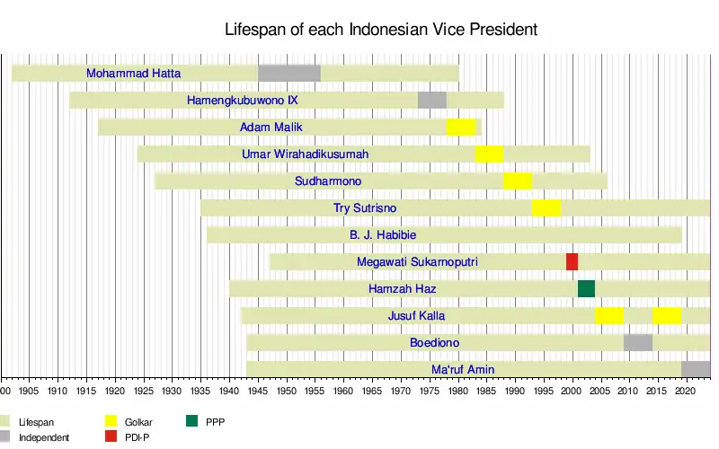 - Bottom left: Jusuf Kalla is the first and remains the only to serve two terms as vice president.