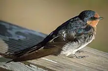 The family Hirundinidae is adapted to aerial feeding. They have a slender streamlined body, long pointed wings and a short bill with a wide gape. The feet are adapted to perching rather than walking and the front toes are partially joined at the base.