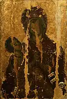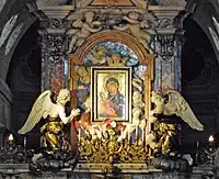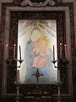- ↑ Saint Joseph within the icon of the Holy Family. The image of Saint Joseph wears a golden ring donated by Pope John XXIII in 1963, accompanied with a personal letter of "consecration".