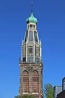 [Forty-nine bells are installed in the western belfries; 4 pendulums and 45 "playing" (carillon). The largest bell weighs 6,128 kg, and the lightest weighs 11 kg; the carillon weighs about 19,000 kg; the total weight of all 49 bells is 23,755 kg] - ↑ "RSBLGDSS". TowerBells.org. Retrieved 9 August 2022.
