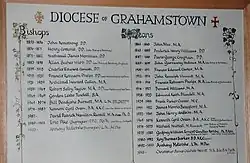 Diocesan chart showing bishops and deans of St Michael and St George Cathedral