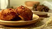 India | A South Indian snack of savory crunchy twists made from rice and urad dal flour.[2] Murukku means twisted in the Tamil language.[3] The town of Manapparai in Tamil Nadu is particularly known for its murukku.[4] Murukku is made in many varieties as a traditional treat for festivals such as Diwali and Krishna Janmashtami.[5] Murukku are often served on special occasions within Iyer (Tamil Brahmin) families.[6] |