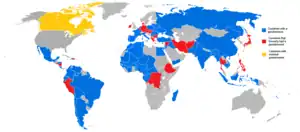 Although pioneered in France, the concept of a gendarmerie was adopted by several other European nations during the Napoleonic Wars.[1] It remains an integral part of the military establishment in most Francophone states and territories.[1] A somewhat related phenomenon has been the formation of paramilitary units which fall under the authority of civilian police agencies. Since these are not strictly military forces, however, they are not considered gendarmerie.[2]