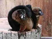 The endemic primates of Madagascar, the lemurs, constitute a single clade and are the largest branch of strepsirrhines. It has been proposed that a common ancestor of all Madagascar's lemurs rafted across the Mozambique Channel from Africa[23][24][note 7] between 50 and 60 million years ago.[16][17] However, findings of similarities in dentition between several African primate fossils and aye-ayes, the most basal of lemurs, have led to the alternate proposal that the ancestors of aye-ayes colonized Madagascar separately from other lemurs.[25]