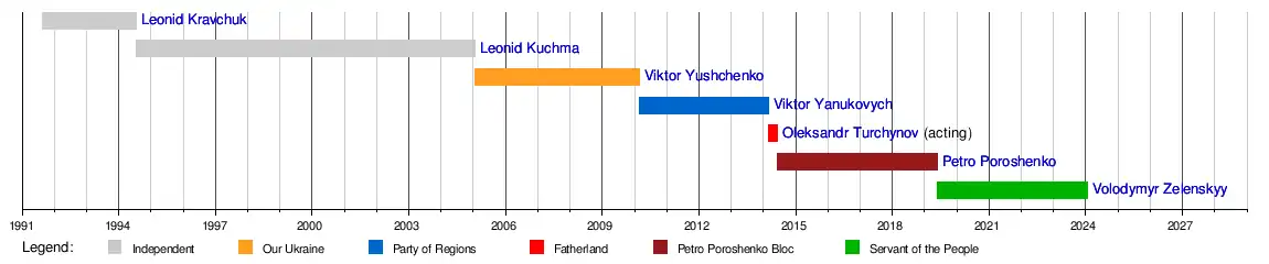 - ↑ "The History of Presidency". Official web-site of President of Ukraine. Archived from the original on 2 March 2008. Retrieved 29 March 2015.