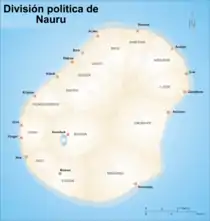 A map of Nauru showing districts, and the current main villages
