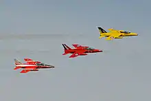 The three Gnats of The Heritage Aircraft Trust display at the 2014 RAF Waddington International Airshow