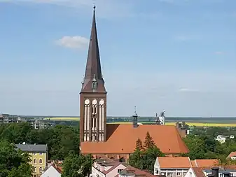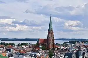 117.5 m (385 ft) | 1892 | Schwerin | ![]() | Lutheran | 53°37′47″N 11°24′50″E / 53.629626°N 11.413898°E | Tallest church in Mecklenburg-Vorpommern; tallest in Mecklenburg |
