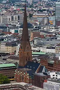 125.4 m (410 ft) | 1963 | Hamburg | ![]() | Lutheran | 53°33′01″N 10°00′01″E / 53.550359°N 10.000359°E | Fourth-tallest church in Hamburg; new, modern spire finished 1963 |