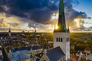 123.7 m (405.84 ft) | 1450 | Tallinn | ![]() | Baptist | 59°26′29″N 24°44′50″E / 59.441378°N 24.747334°E | Tallest church in the Baltic states; tallest in Estonia; tallest Baptist church; according to some sources also the tallest building in the world from 1549 to 1625[note 1] |