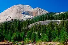 Moraine Dome is a granite dome in Yosemite National Park along the northern margin of Little Yosemite Valley at 37°44′35.15″N 119°29′24.49″W / 37.7430972°N 119.4901361°W which rises to an elevation of 8,036 ft (2,449 m) AMSL, 1,906 ft (581 m) above the Merced River. Moraine Dome is notable because the presence of lateral moraines from the Merced Glacier. It is likely that these moraines represent the highest level attained by glacial ice in Little Yosemite Valley.[5] Although it is about as high as Sentinel Dome Moraine Dome is dwarfed to relative insignificance by its proximity to the bulk and elevation of Clouds Rest to the north.[5]