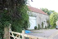 Some of the buildings remain intact, while others are ruined. The farmhouse was built in the mid 16th century but has been added to and revised in the 17th, 18th and 19th centuries. It is a Grade II* listed building,[2] as is the 17th century barn.[3] Powder Mill Cottage was built in the 18th century as the cooperage for the powder mill.[4] The clock tower which was part of the works was originally attached to a chapel or office.[5]