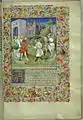 Later, in 1413, John the Fearless gifted the manuscript to his uncle John, Duke of Berry, whose coat of arms appears on Folios 1, 97, 136v, 226, and 268. Inventories in 1413 and 1416 of the Duke of Berry's personal library confirm that the manuscript remained in his possession until his death.[1]