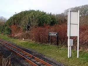 Llanbadarn railway station is a railway station serving the ancient villages of Llanbadarn Fawr and Pwllhobi near Aberystwyth in Ceredigion in Mid-Wales. It is a request stop on the preserved Vale of Rheidol Railway.[1] Alighting passengers are required to step down onto the grass as there is no platform. Tickets can be purchased from the guard.