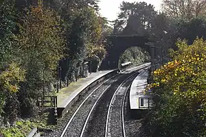 Llanishen railway station (Welsh: Llanisien) is a railway station serving the area of Llanishen in Cardiff, south Wales. It is a stop on the Rhymney Line of the Valley Lines network.