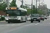 The No. 5 Streetcar operated through Pikesville starting in 1916, and until 1938. The line operating through the city not along Reisterstown Road, but on the nearby parallel Park Heights Avenue.[3] Bus service on Reisterstown Road inside of Baltimore City started in 1929, provided on Route L. This became a part of Route 5/7 in 1948. In 1959, Route 5/7 was split, with the no. 5 designation being assigned to the Park Heights Avenue line, and the no. 7 designation being given to the route on Reisterstown Road. Route 7 was also combined with Route 18 (the former Pennsylvania Avenue Streetcar Line) at the time, providing service downtown from all points along Reisterstown Road.[4]