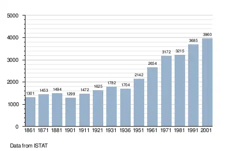 - ↑ "Popolazione Residente al 1° Gennaio 2018". Italian National Institute of Statistics. Retrieved 16 March 2019.
